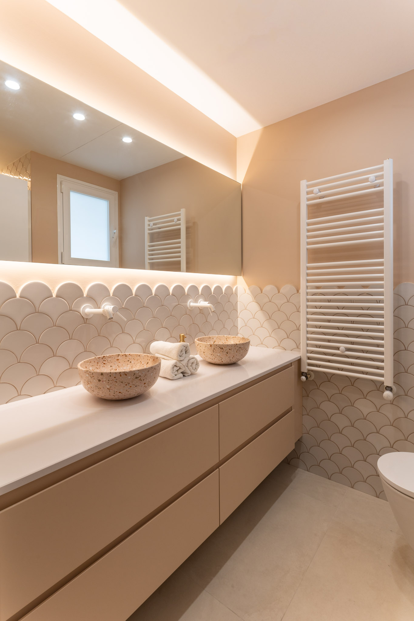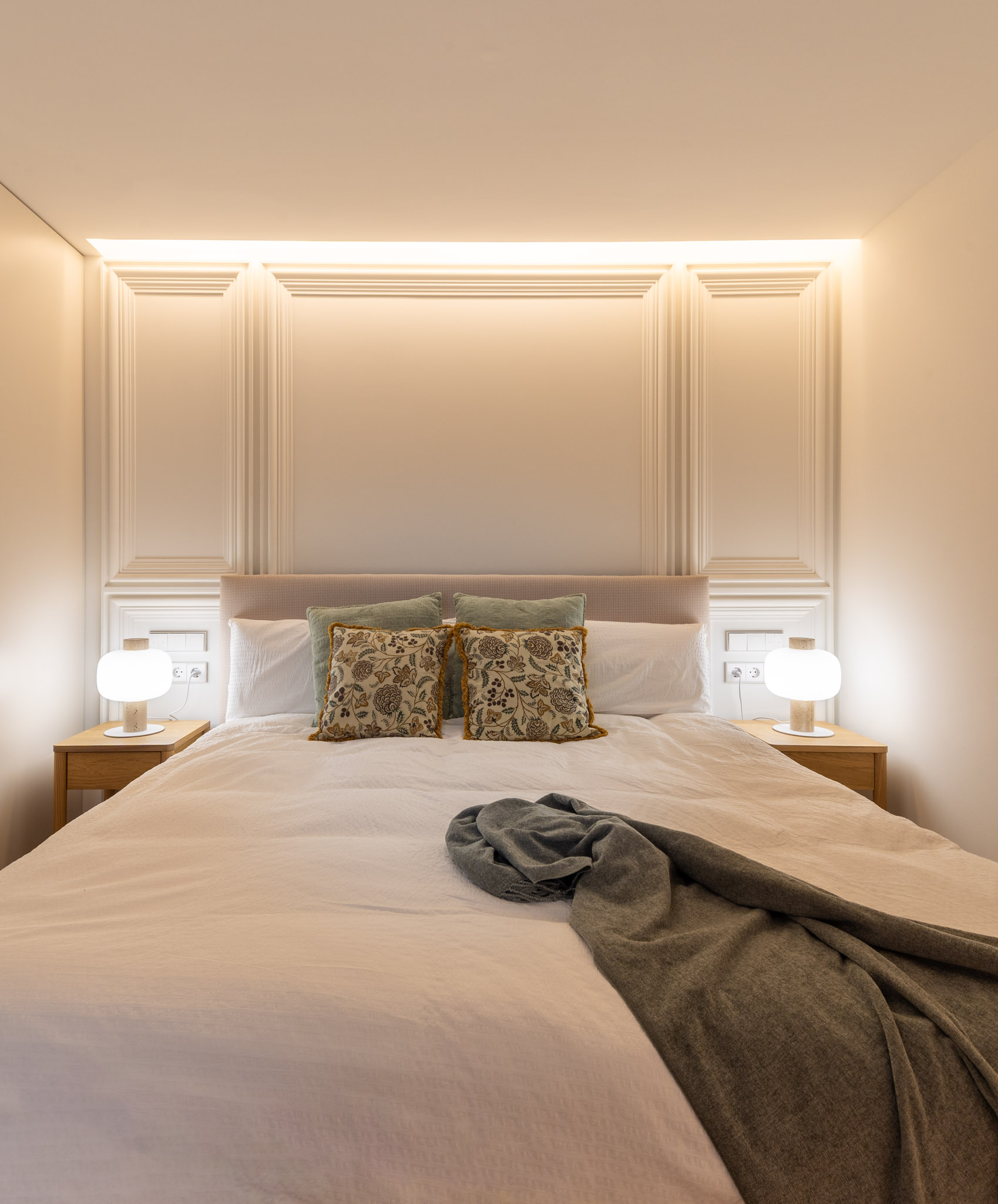 En esta vivienda el reto era claro: aprovechar al máximo cada metro cuadrado. A través de una cuidada redistribución, logramos crear cinco dormitorios, diferenciando perfectamente la zona de los niños —con sus propias habitaciones y un baño compartido— de la zona de día.
