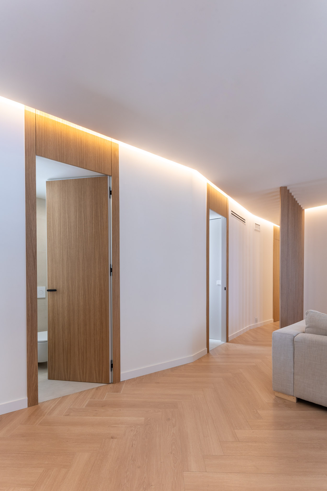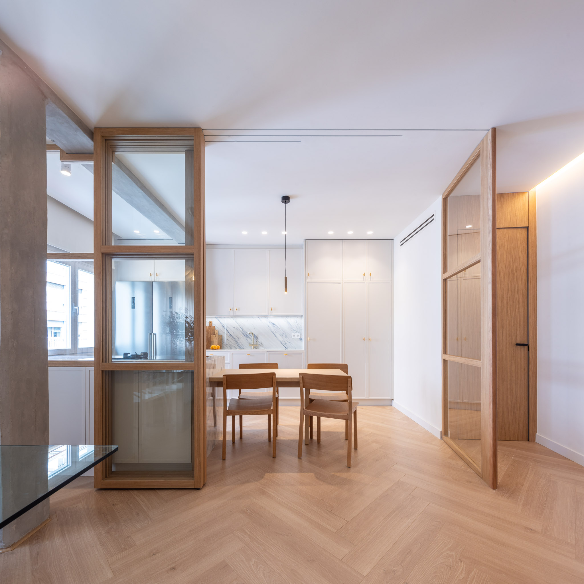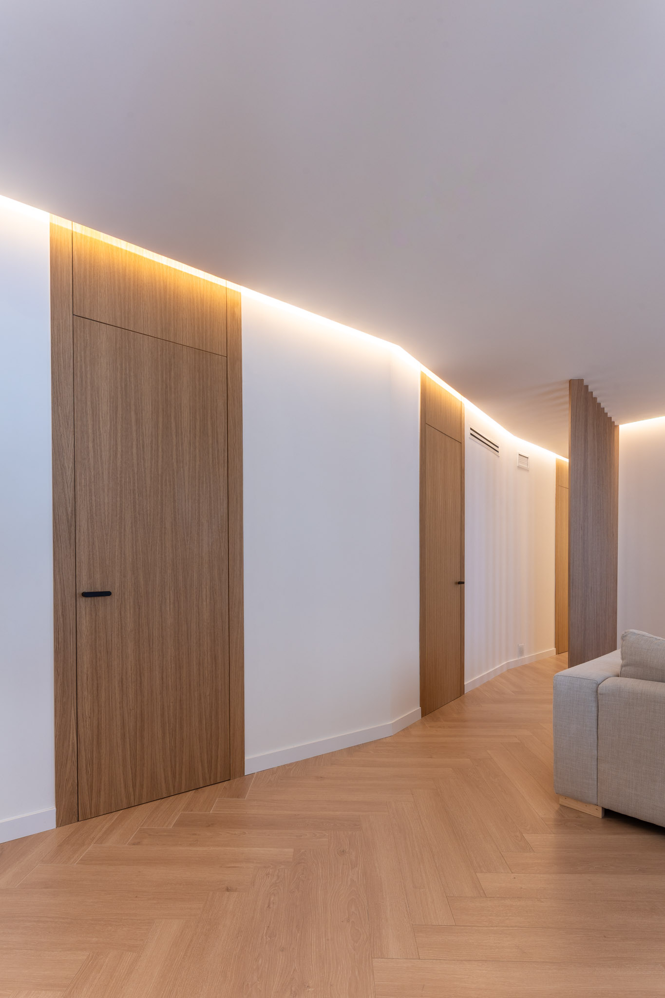 Además, se diseñaron soluciones de almacenaje a medida en diferentes estancias, multiplicando la capacidad de organización sin sacrificar amplitud ni estética.El resultado es un hogar funcional y versátil, donde cada miembro de la familia encuentra su propio espacio, y al mismo tiempo se disfrutan áreas comunes amplias y conectadas.