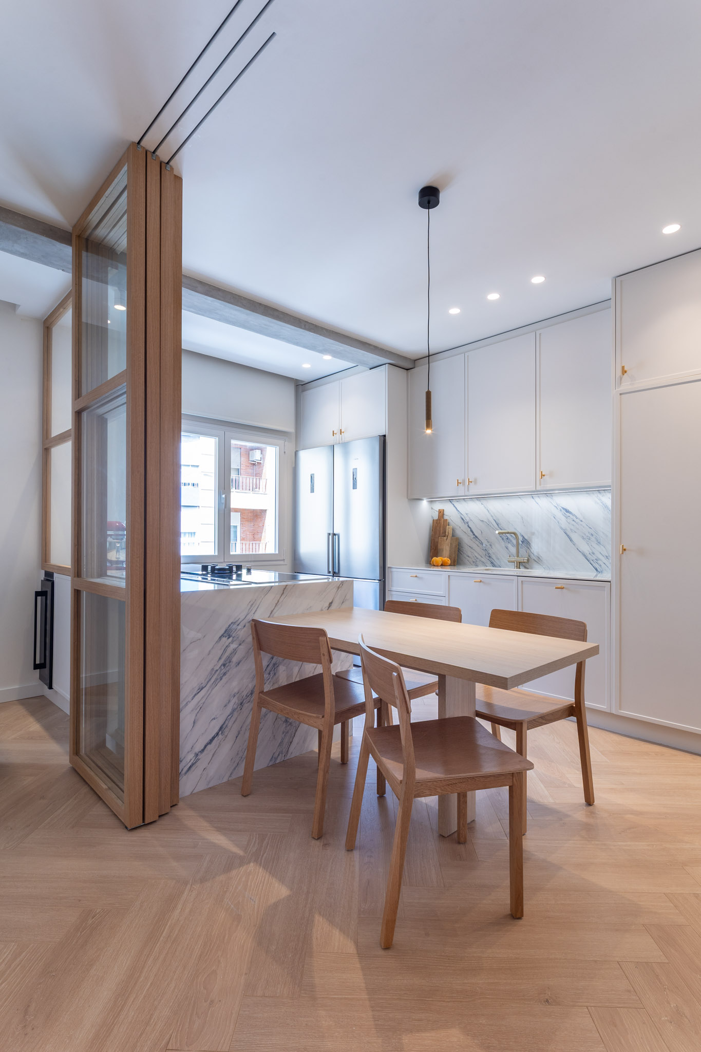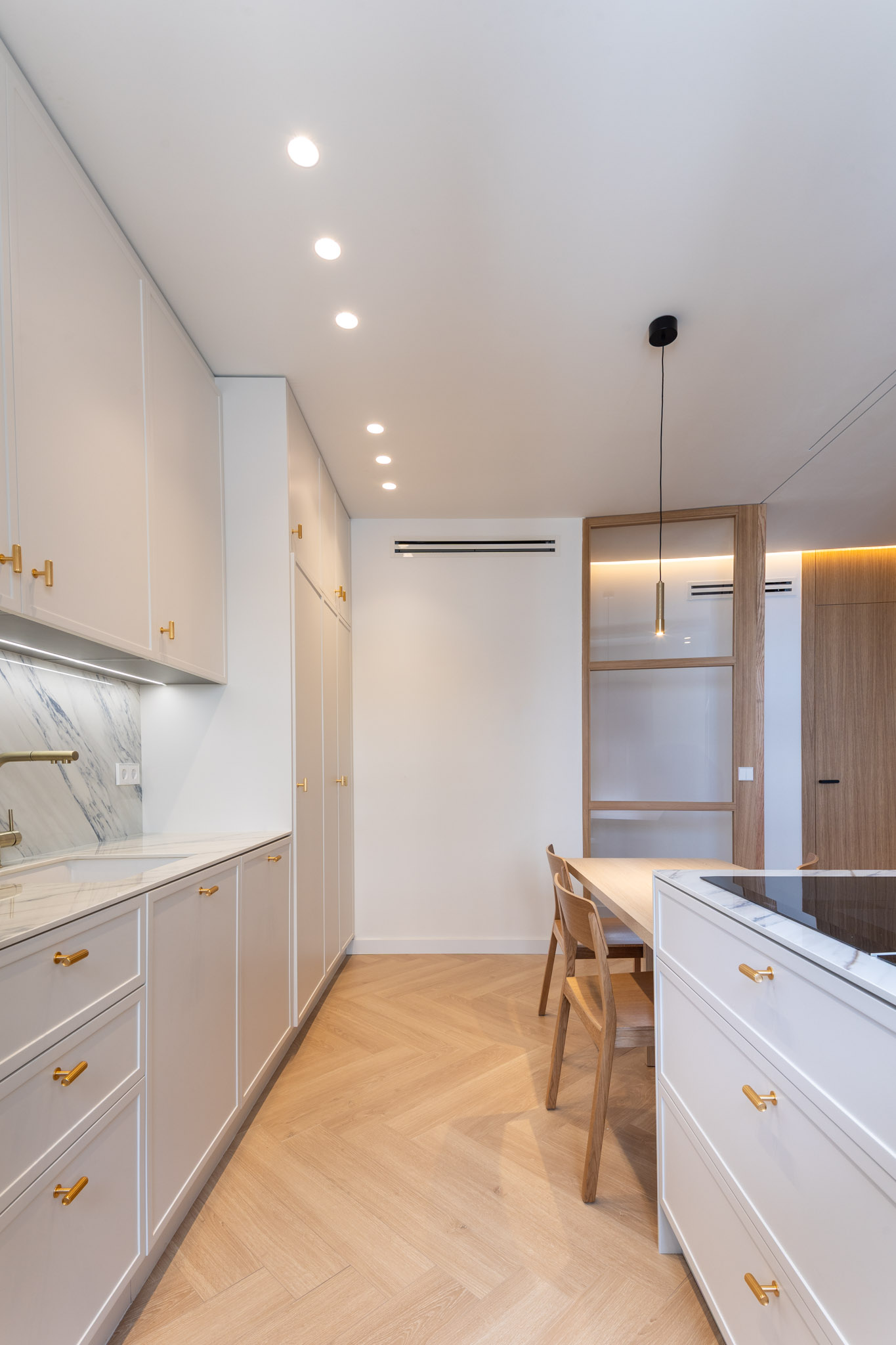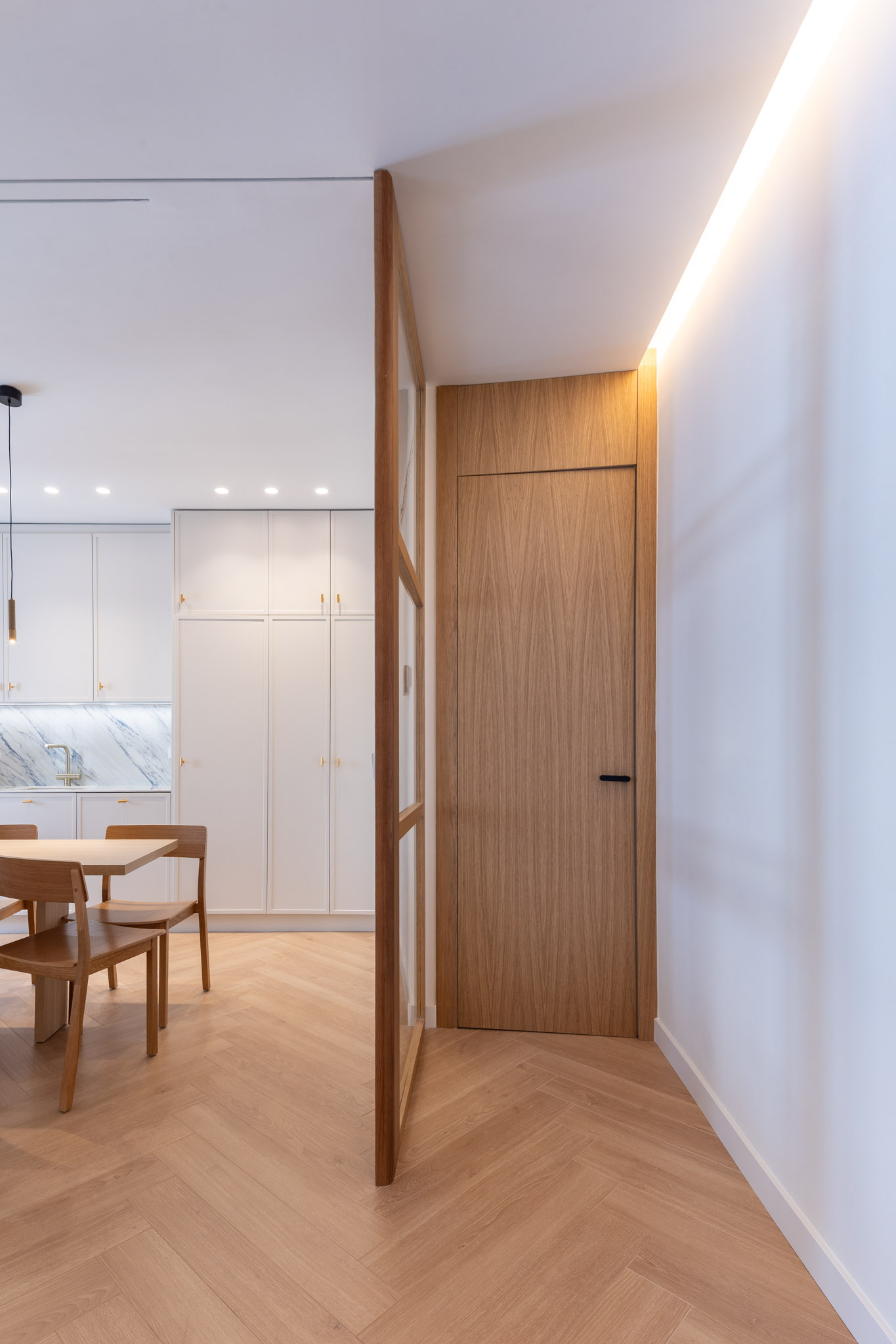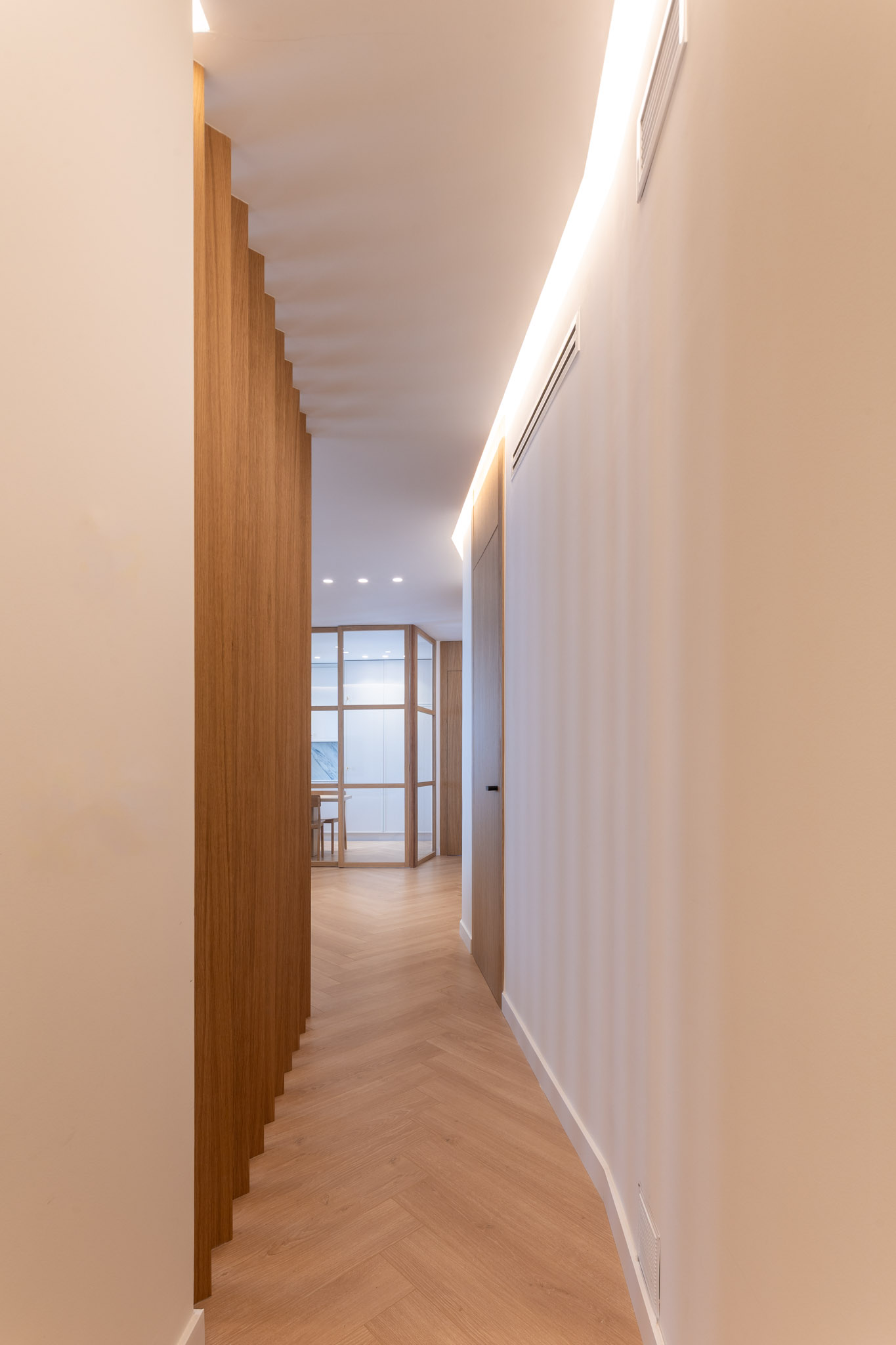 Además, se diseñaron soluciones de almacenaje a medida en diferentes estancias, multiplicando la capacidad de organización sin sacrificar amplitud ni estética.El resultado es un hogar funcional y versátil, donde cada miembro de la familia encuentra su propio espacio, y al mismo tiempo se disfrutan áreas comunes amplias y conectadas.